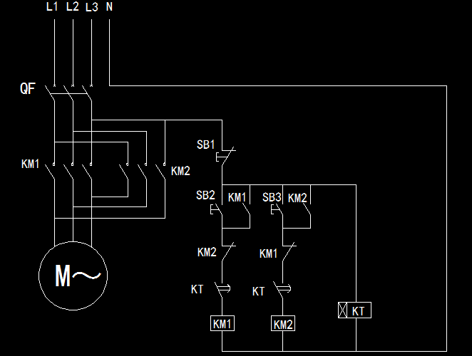 引用引用第33樓licong1238于2012-08-27 04:07發(fā)表的 :這個(gè)圖應(yīng)該可以解決你所說(shuō)的問(wèn)題,加一個(gè)時(shí)間繼電器延時(shí)閉合就行了,當(dāng)每次電機(jī)停止以后只有延時(shí)閉合了才能再次啟動(dòng).