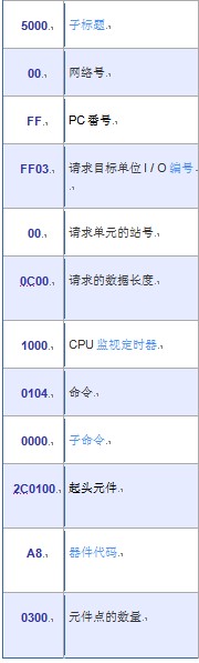有哪位大哥知道這部分的手冊是哪個,找了三菱的手冊沒找到,像這部分01FF000A4420000000000500和500000FF03FF000018000A04010000D*0000000005  什么意思都不清楚???
