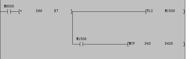 這樣行不,周期頭是D66的變化輸入和與上一周期值比較,最末時用D67記錄本次周期的值,下一周期如果D66有變化就mov D40到D400Z