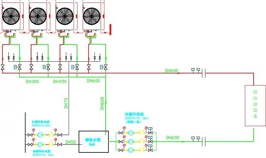 另外管道加有機(jī)械式流量控制閥,由4臺冷卻塔對循環(huán)水降溫,每臺塔出水口有一個(gè)電動(dòng)閥。