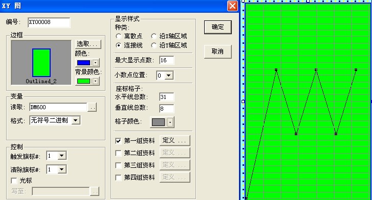 像海泰克這樣 DM600在PLC對應的是曲線的點數  在威綸里面怎么寫呢 其中X取值來自DM572               Y取值來自DM542  求高手解答一下