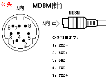 上張三菱PLC圓頭8針的rs422接口定義圖片