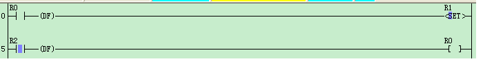 0:  R0=ON有上跳沿 所以set R1=ON