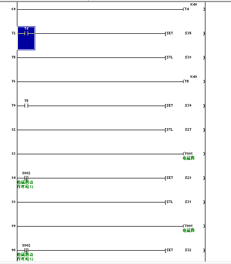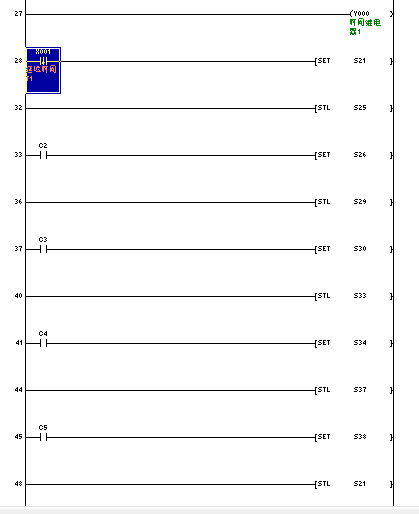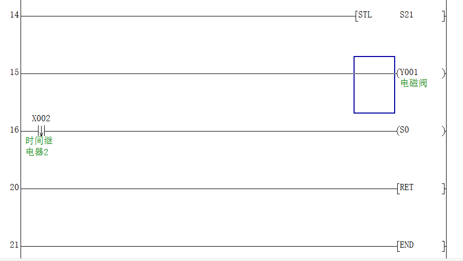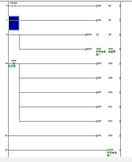 原因:當步號S20激活運行定時器(外部定時器),當時間到達,那個X001(定時器觸點連接到plc)產生的是上升沿,而你使用下降沿。下降沿有效是需要斷開定時器的,也就是步進指令往上或者下跳轉時才會有效。