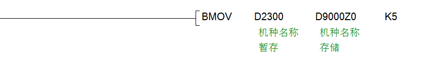 三菱這條指令的意思是:若Z0等于0的話,把16位寄存器D2300的值賦值給D9000;  D2301的值賦值給D9001;D2302的值賦值給D9002;D2303的值賦值給D9003;D2304的值賦值給D9004;