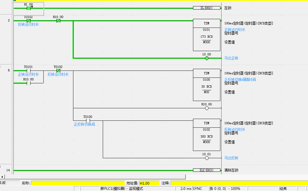 X1為正轉啟動,X2為停止,X3為反轉啟動,Y1為正轉控制,Y2為反轉控制。