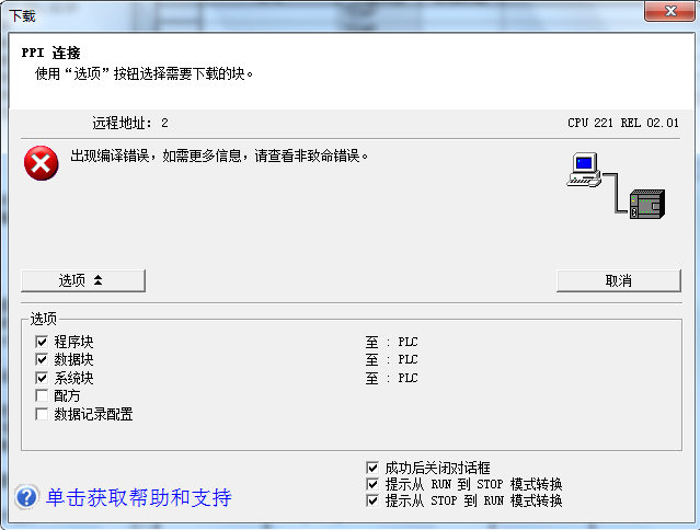 玩西門子的高手看看!  以前都用三菱 沒用過西門子。。。200的 下個軟件搞了2個小時 通訊上又搞了1個小時 程序?qū)懞?要下載。。。又出現(xiàn)一個錯誤。。。檢查程序沒問題。。一看解釋 懷疑是不能寫在一個網(wǎng)絡(luò)。。可能步數(shù)超過了。。又分開2個網(wǎng)絡(luò)寫 終于沒錯誤了 。。又開始下載。。。又出現(xiàn)一個錯誤。。。暈死了 這會不知道怎么搞了 上圖 。。熟悉西門子的 看看 程序我也上個吧 簡單的程序
