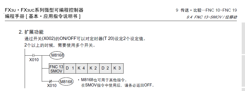 今天寫(xiě)一個(gè)程序用到了smov位移動(dòng)指令,本來(lái)沒(méi)什么的,但后來(lái)去看了三菱的編程手冊(cè),看到這樣一句話(huà),