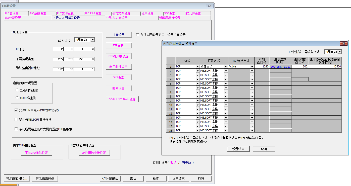 內(nèi)置以太網(wǎng)功能,使用通訊功能可以進(jìn)行TCP通訊,還得請(qǐng)教PLC端如何設(shè)置?昨天設(shè)置了,通訊有異常。是否有相關(guān)資料可以提供參考一下,不勝感激!