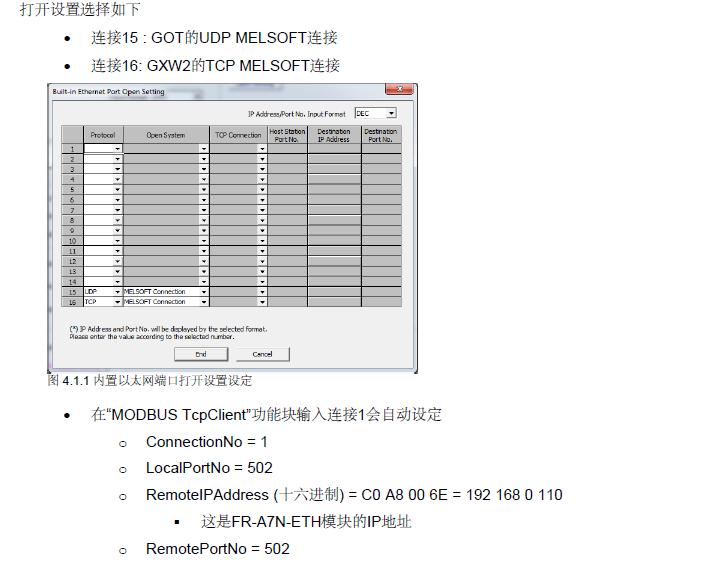 內(nèi)置以太網(wǎng)使用通訊協(xié)議功能,可以實(shí)現(xiàn)Modbus TCP通訊。