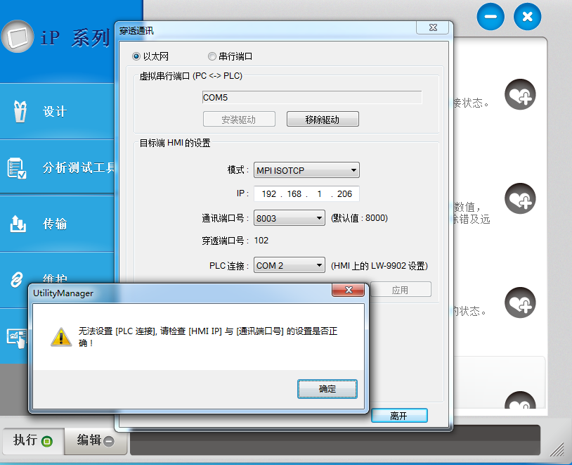 1.是否可以穿透?用的USB-MINI端口和電腦連接(com5),plc和觸摸屏用的是485(com2)