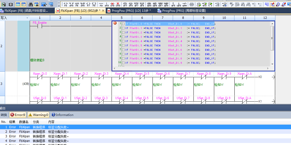引用引用樓主吳工2014于2018-02-08 09:24發表的 求助三菱FX5U FB/FUN程序編譯出錯“標簽分配失敗”,謝謝! :附件為程序,FB/FUN程序我屬于小白一個,請大師們幫忙這小段程序哪里有誤,跪謝!!!