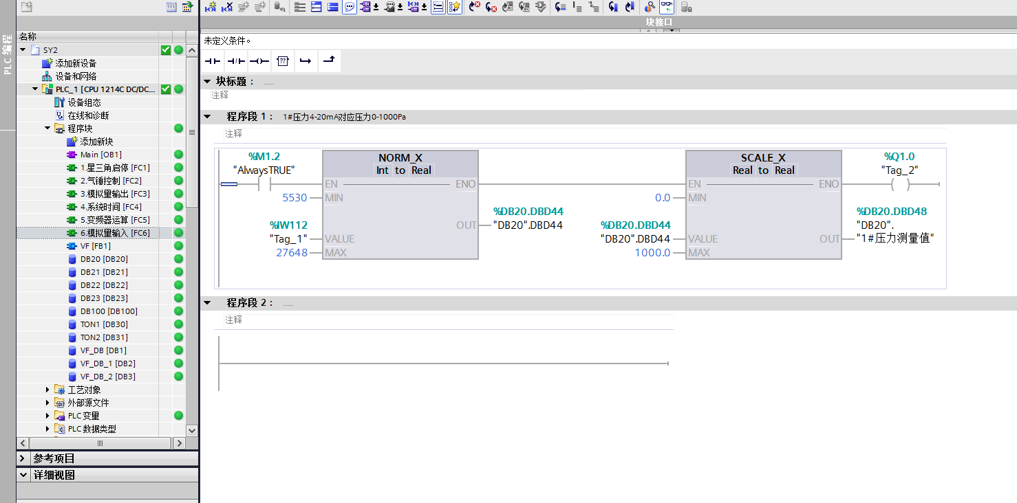 如圖是模擬量輸入4-20毫安對應0-1000Pa,仿真時都沒有接通,難道模擬量輸入程序是不能仿真的?