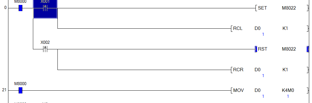 三菱梯形圖,手動部分,同一個按鈕,每按下一次順序動作置位一個動作。第二個按鈕每按一次,按照反順序復位一個動作。懇請大神賜教。多謝了。