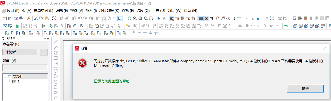 電腦中已經安裝了OFFICE2016 ,安裝Eplan P8 2.7操作時打不開數據庫,請朋友指點,謝謝!
