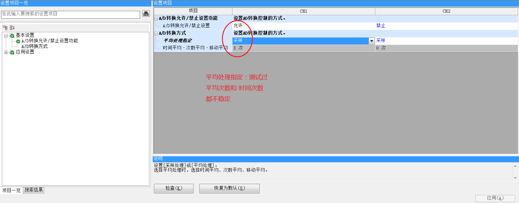 FX5U輸入模擬量測試0-10V,很不穩定,監控 SD6020的數據一直在亂跳動,根本看不清數據是多少。  如圖是參數設定