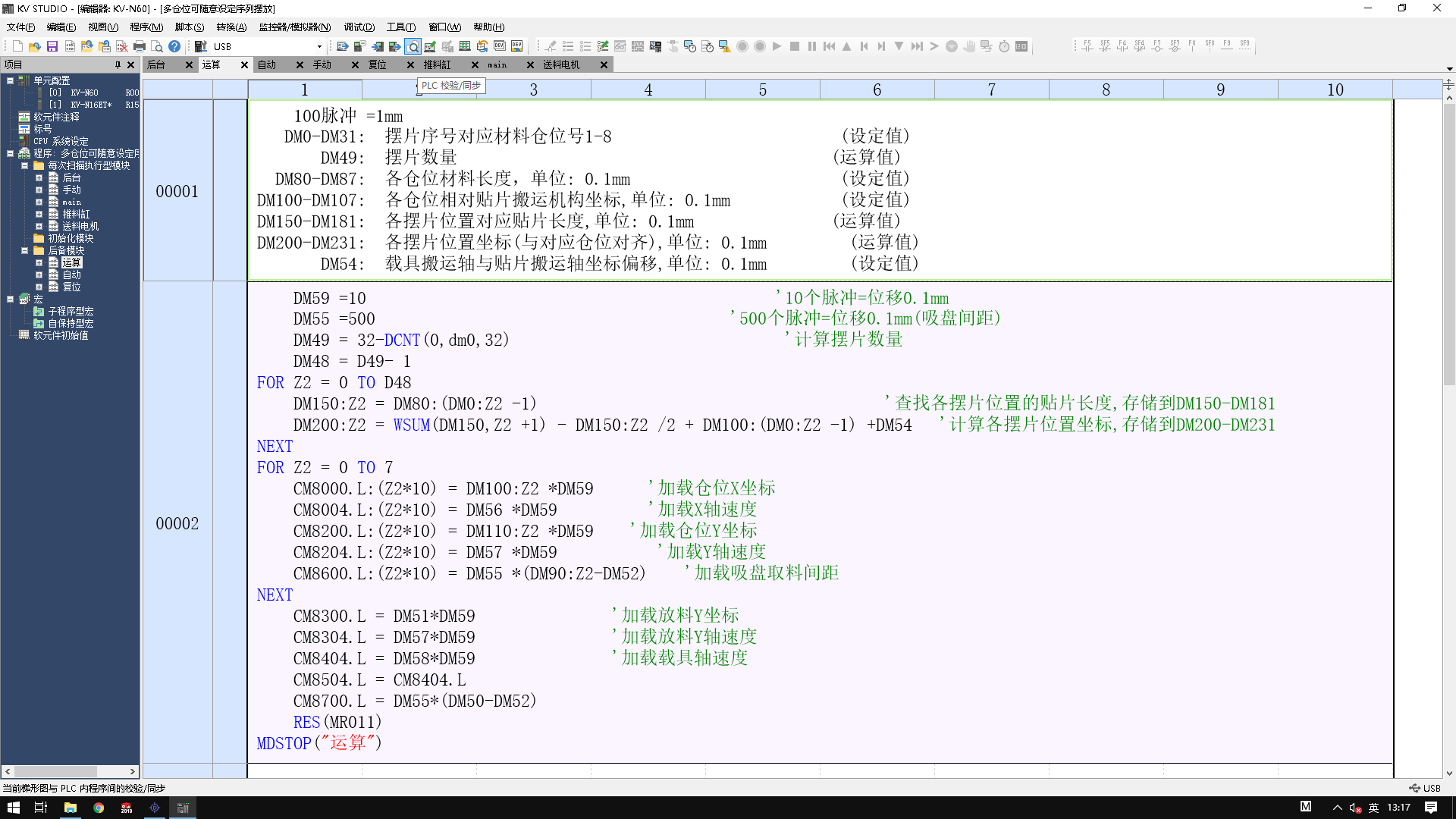 配方保存在人機界面里,按需下載到PLC  數量,長度,序列均可在觸屏設定
