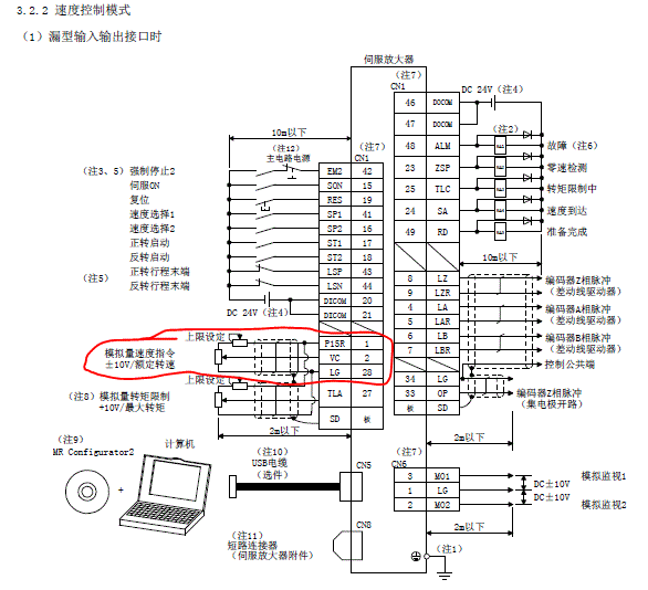 各位:請問一下三菱伺服器MR-JE-100A這,速度模式控制,調速度VC針腳是外部+10V施加?還是內部有10V電壓?還是就加一個電位器呢?速度模式需要調哪幾項參數?謝謝