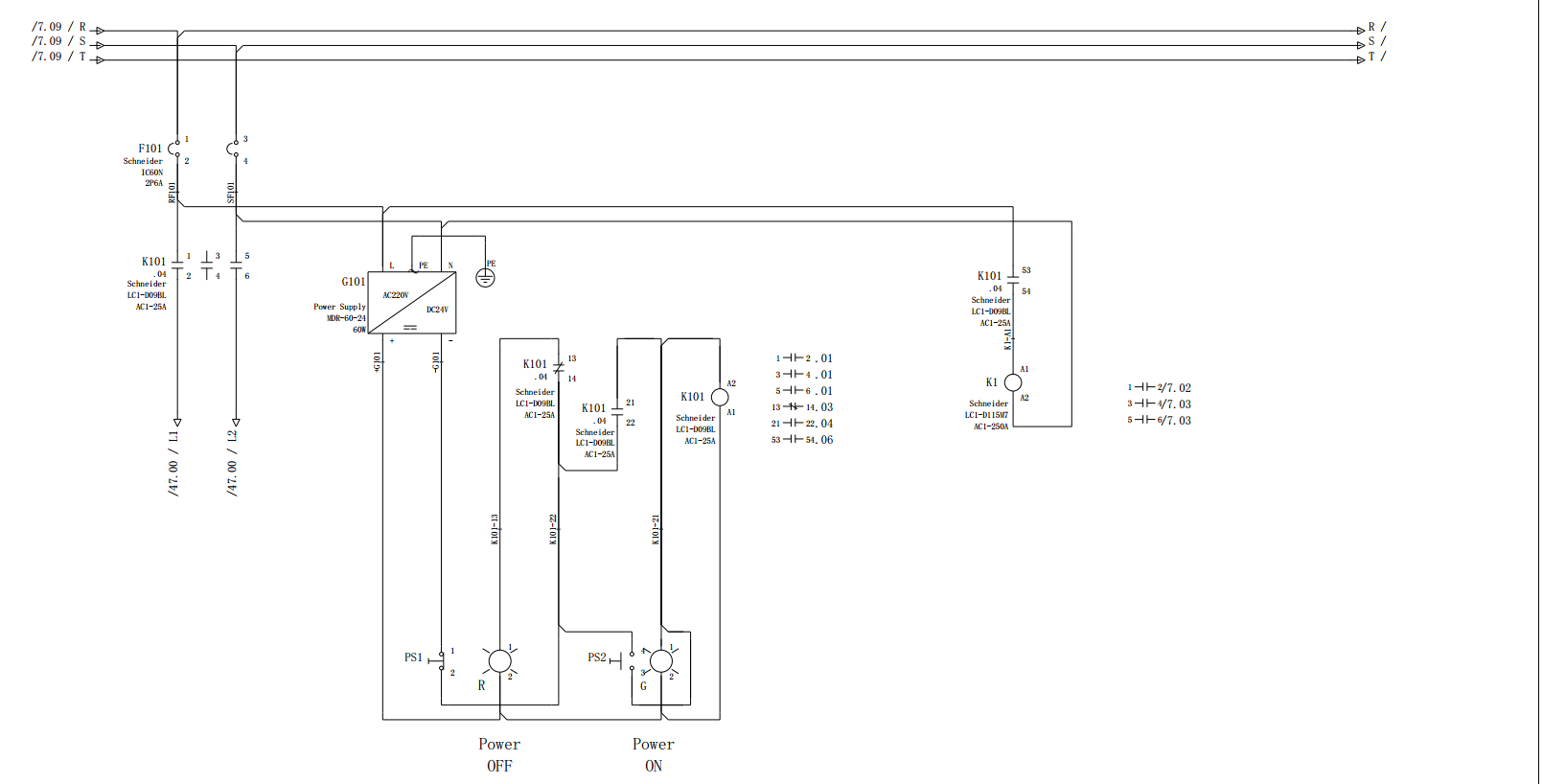 ![]() 請教一下,我們公司做電器柜設(shè)計(jì)的時(shí)候都會(huì)在NFB總開關(guān)下面加交流接觸器,用24V直流控制,然后NFB下來過接觸器的RST下去接各個(gè)斷路器,這個(gè)接觸器是用按鈕做控制的我能理解,有時(shí)候每一個(gè)外圍設(shè)備都會(huì)單獨(dú)添加一個(gè)接觸器,很不理解,我如果不要接觸器直接相線下來和用接觸器中轉(zhuǎn)我想請問一下接觸器除了做直流控交流這種邏輯外,還有什么其他功能?百度說滅?防止啟動(dòng)電流過大?。 下面兩張圖K1和K101, K101是做啟動(dòng)的,為什么不選一個(gè)大一點(diǎn)的接觸器直接接到主電路中,要多此一舉再控制一下K1,再用K1來控制主電路呢?求解,謝謝! |