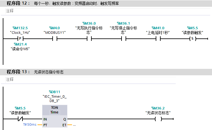 手頭有一項(xiàng)目,S7-1200通過Modbus對(duì)臺(tái)達(dá)變頻器進(jìn)行讀寫操作,寫操作為外部輸入信號(hào)觸發(fā),現(xiàn)在通過兩種方法可以實(shí)現(xiàn),但是效果非常不理想,第一種為中斷響應(yīng),既有外部觸發(fā)信號(hào)后,在當(dāng)前通訊狀態(tài)為OFF情況下,進(jìn)行寫操作,同時(shí)以1S為周期,進(jìn)行讀操作;第二種方法通過周期觸發(fā)讀寫信號(hào),如5HZ的頻率對(duì)變頻器進(jìn)行讀寫,但是實(shí)際測(cè)試,這種方法響應(yīng)特別慢,小弟實(shí)在智窮,請(qǐng)大神指教。