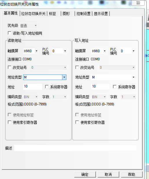 用步科et070觸摸屏和國產三菱工控板做了個小程序,用的485通訊,連接是可以了,觸摸屏可以讀取plc里面輸出y的狀態,但無法設置plc里D的數值,也無法控制接通plc里m輔助觸點,謝謝指點!