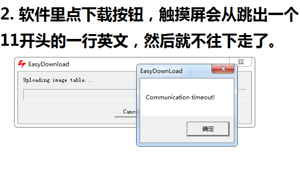 我試過的方法有1,、軟件用V2.52。V2.61。V2.74都試了,問題依舊同上。下載時觸摸屏只跳到11就不往下走了。2、我換過232串口線,換過電腦問題依舊。