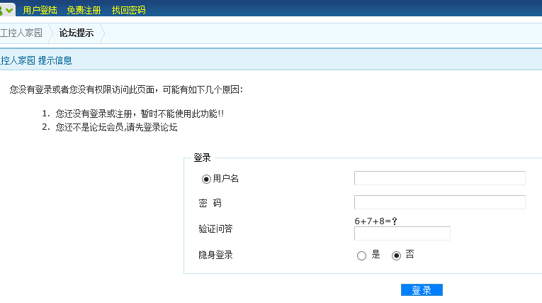 各位親,本人出差了半個多月回來,電腦也更新了,也換了新系統,以前所有保存的密碼都沒有記憶了。當我想登陸工控時,發現沒有像以前的電腦一樣點擊自動登陸了,然后嘗試找回密碼,彈出以下對話框,接著嘗試加版主賬號,給他留言,結果都是返回到登陸的畫面。請問樓主有否其他更簡化的辦法,或者能否仿照其他有關的軟件,加郵箱加手令加隨機短信來重置密碼。不是的話真的忘記了就無法再登陸了,這樣也不太合理吧