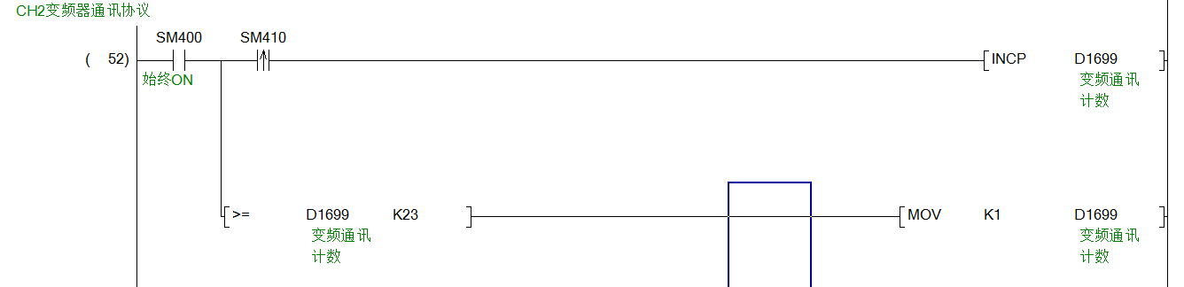 用QJ71C24-R4,CH1跟三菱變頻器E740做通訊,專門協議做有2臺變頻器通訊,如果變頻器都打開,通訊是正常的讀取頻率和寫入頻率都是沒問題,如果關掉一個變頻器通訊就不行了頻率就寫不進去。幫忙看看能不能解決。