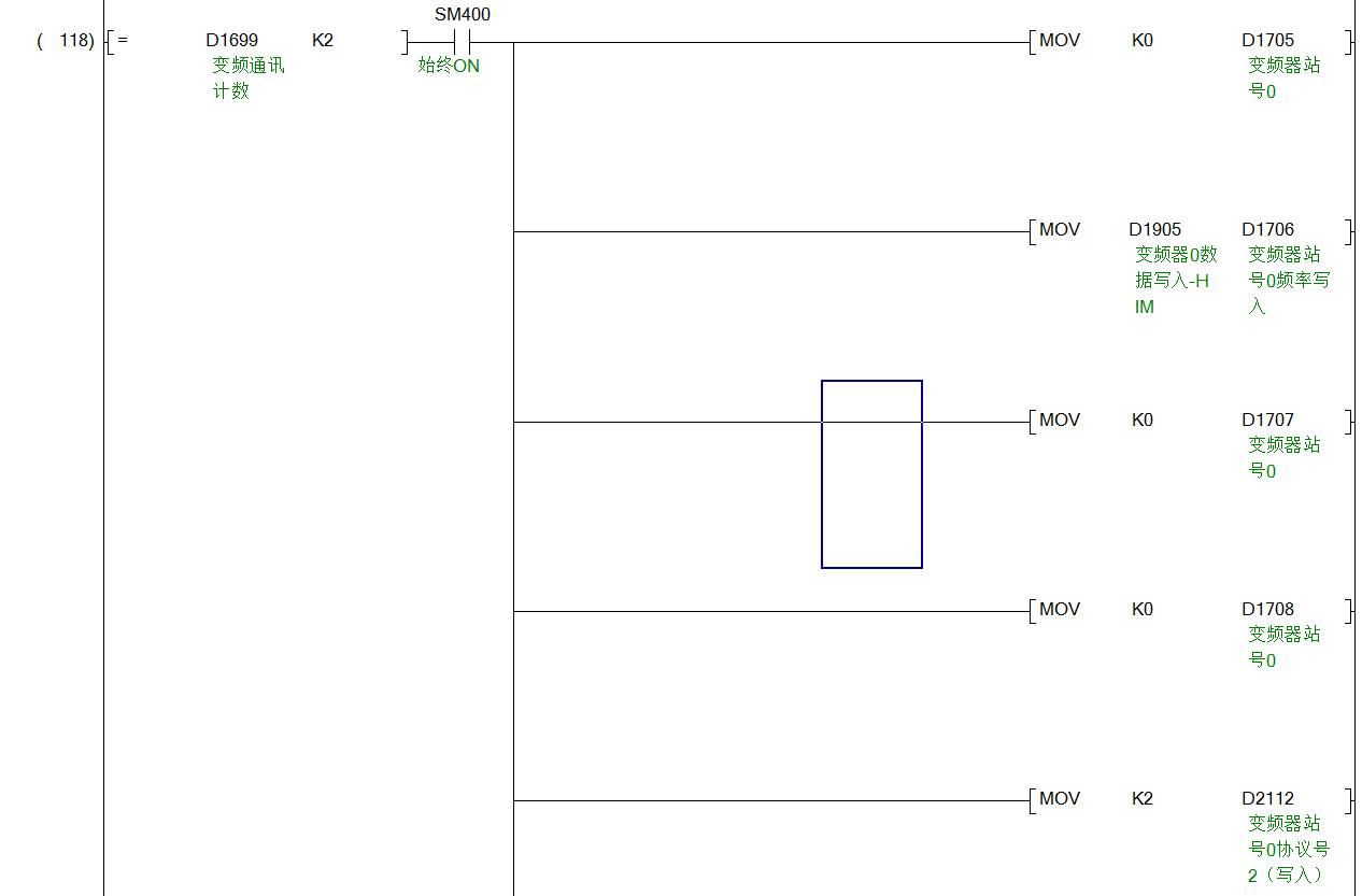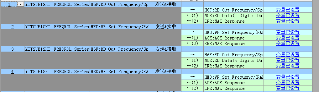 因為這個指令的執行機制是先執行第一條數據,收到響應后再繼續執行,關掉變頻器之后就卡死在其中的一步了,所以通信中斷。