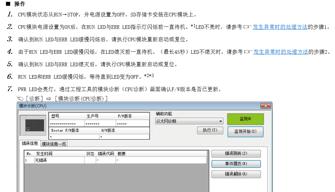 詳情參閱:《FX5U用戶手冊(cè)(應(yīng)用篇)》第2章第5節(jié)以及附9,或在 e-Manual Viewer 軟件中跨文檔搜索 固件更新功能