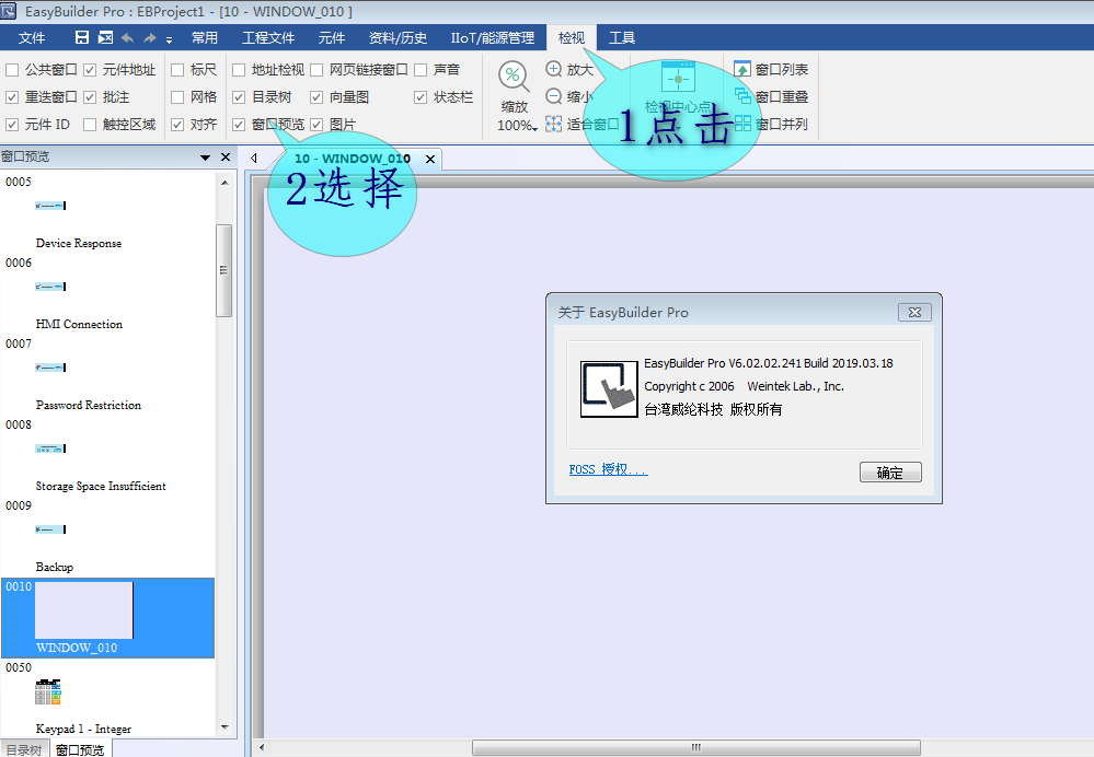 威綸通編程軟件最新版本EBpro新建工程后編輯頁面左邊沒有窗口列表,在哪里可以找到?怎樣把它放置在最左邊?