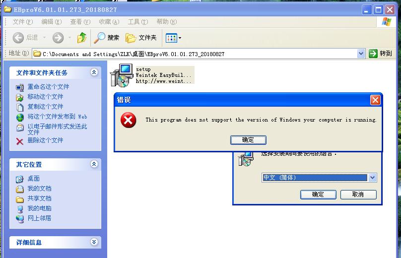 我系統還是XP的,原安裝的是EBproV5。在打開網上下載的例程時提示版本過低,需V6以上版本。從官網下載EBproV6的軟件安裝時提示以下問題,是什么原因?我卸載V5后安裝還是出現這個提示。