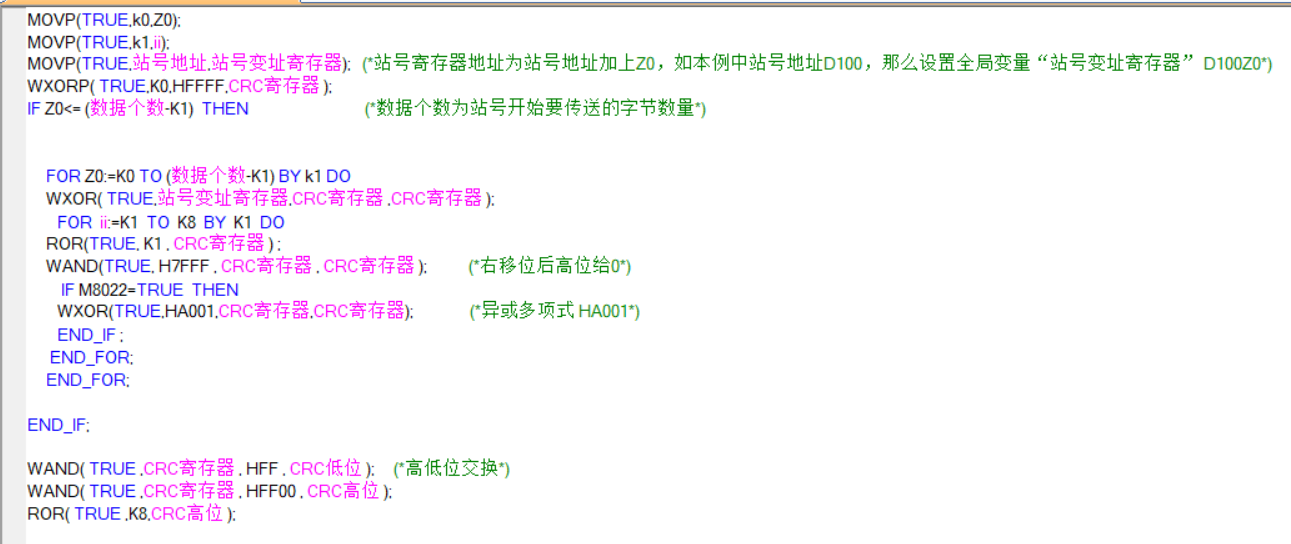 WXOR( TRUE,K0,HFFFF,CRC寄存器 );
