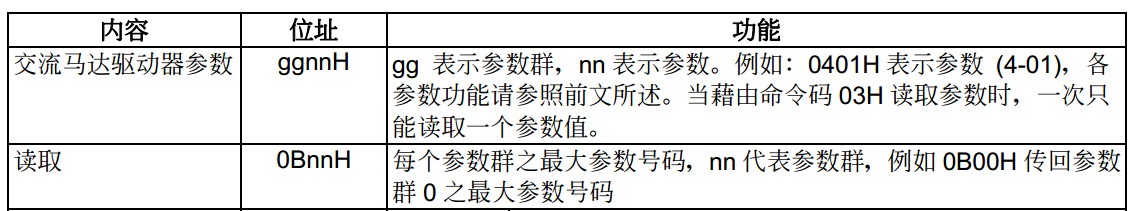 啟動(dòng),停止,加減速。正反轉(zhuǎn),這些都行。就是要在屏上改參數(shù)群中的其它參數(shù)的地址不知怎樣的格式。按照?qǐng)D2第一行講的也沒有成功。