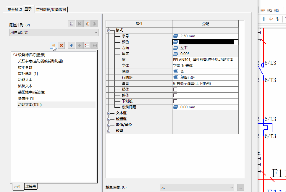 ![]() 首先線圈部分的功能文本寫好,然后到觸點部分右鍵屬性》》切換到顯示》》點擊新建》》功能》類別》功能文本(共用) 動圖有點快,湊合先看看 樓主留言:謝謝你的耐心解答,剛才試了試的確通過設置主觸電屬性顯示里的(功能文本共用)在主觸點上顯示了線圈的功能文本。 |