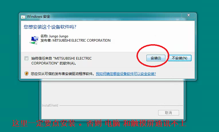 安裝觸摸屏軟件時,有一步會彈出提示,提示問你是否安裝這個驅動