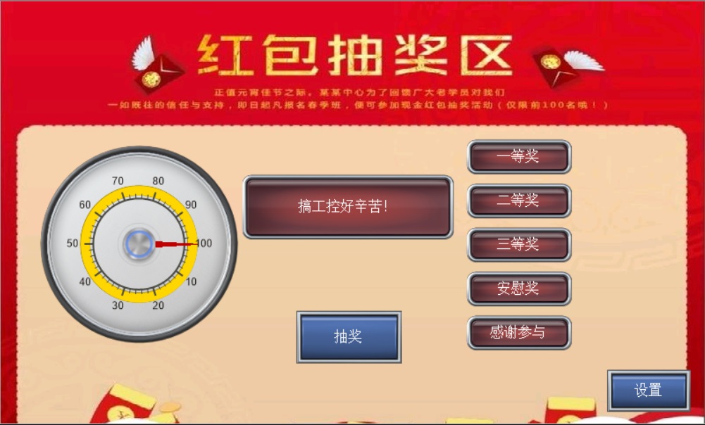 我自己模擬用觸摸屏抽時,總得一二三等獎。
