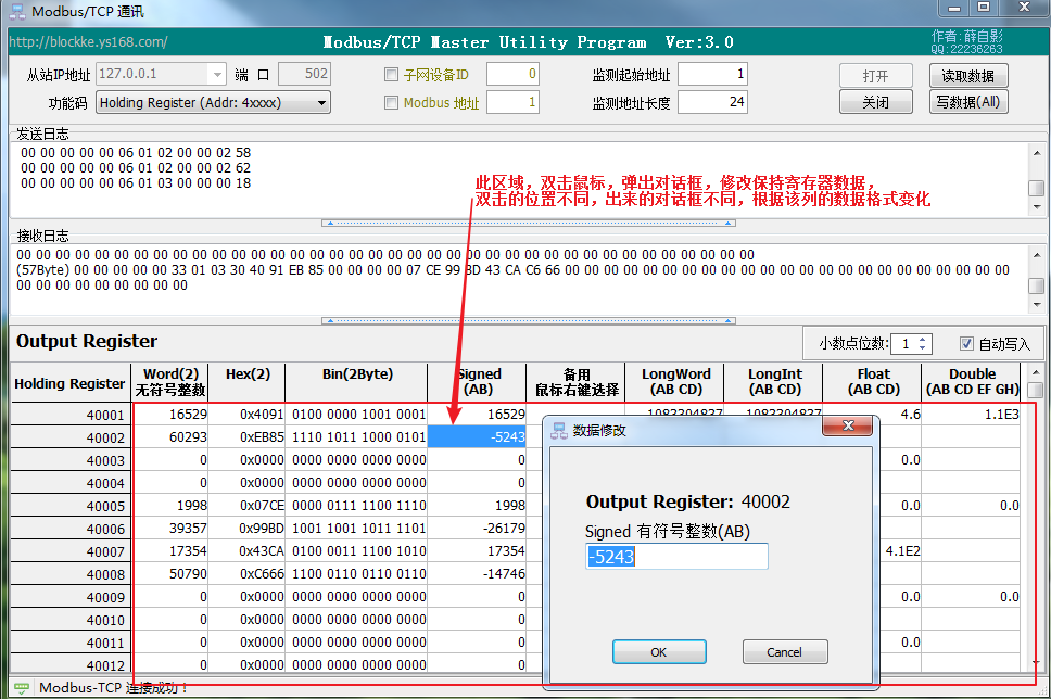 Modbus TCP 主站測試軟件(更新) 這是一個小巧的Modbus TCP Master測試工具.是現場通訊測試的最佳助手。適合運行在任何Windows平臺下。綠色軟件,無需任何運行庫。 該軟件作為Modbus TCP 主站(即Mdobus 客戶端)使用,可以讀取線圈寄存器(Output Coil)、離散輸入寄存器(Input Relay)、保持寄存器(Holding Register)、輸入寄存器(Input Register)的數據,同時可以寫入線圈寄存器(Output Coil)、保持寄存器(Holding Register)數據;數據可以按格式格式進行顯示,為測試工作帶來便利。 v.3.1.0.28(Build 2020/09/23) - 修訂線圈寄存器、離散輸入寄存器數據顯示 - 新增0FH功能碼功能 - 完善各功能碼反饋提示信息及異常信息 - 新增本地端口參數 - 升級編譯器版本.發布32位和64位程序 - 修正數據顯示的重大Bug Bug Bug!! - 完善各種數據換位格式,可選擇以下顯示方式 1: Signed (2 Byte)有符號整數(AB)* 2: Signed (2 Byte)有符號整數(BA) 3: UnSigned(2 Byte)無符號整數(AB)* 4: UnSigned(2 Byte)無符號整數(BA) 5: LongWord (4 Byte)無符號整數(AB CD)* 6: LongWord (4 Byte)無符號整數(CD AB) 7: LongWord (4 Byte)無符號整數(BA DC) 8: LongWord (4 Byte)無符號整數(DC BA) 9: LongInt (4 Byte)有符號整數(AB CD)* 10: LongInt (4 Byte)有符號整數(CD AB) 11: LongInt (4 Byte)有符號整數(BA DC) 12: LongInt (4 Byte)有符號整數(DC BA) 13: Float(4 Byte)單精度浮點(AB CD)* 14: Float(4 Byte)單精度浮點(CD AB) 15: Float(4 Byte)單精度浮點(BA DC) 16: Float(4 Byte)單精度浮點(DC BA) 17: Double(8 byte)雙精度浮點(AB CD EF GH)* 18: Double(8 byte)雙精度浮點(GH EF CD AB) 19: Double(8 byte)雙精度浮點(BA DC FE HG) 20: Double(8 byte)雙精度浮點(HG FE DC BA) v.2.2.0.18(Build 2020/06/4) - 修正了幾個BUG. v.2.0.0.16(Build 2018/08/9) - 調整界面,并列顯示所有數據格式 - 新增數據顯示格式,加入16位有符號整數,Bin,Double - 增加小數點位數設定, - 增加Float(Swap),Smalint(Swap),Double(Swap) v.1.0.0.0(Build 2018/07/12) - 01H--讀取線圈寄存器(Output Coil),位操作,可讀單個或者多個 - 02H--讀取離散輸入寄存器(Input Relay),位操作,可讀單個或多個 - 03H--讀保持寄存器(Holding Register),字節指令操作,可讀單個或者多個 - 04H--讀取輸入寄存器(Input Register),字節指令操作,可讀單個或者多個 - 05H-寫單個線圈寄存器(Output Coil),位操作,只能寫一個 - 06H--寫單個保持寄存器(Holding Register),字節指令操作,只能寫一個 - 10H--寫多個保持寄存器(Holding Register),字節指令操作,可寫多個 - 輸入寄存器和保持寄存器的數據顯示格式有:16位無符號整數、HEX、Float ![]() ![]() ![]() ![]() ![]() ![]() ![]() ![]() [ 此帖被blockke在2020-09-23 23:34重新編輯 ] |