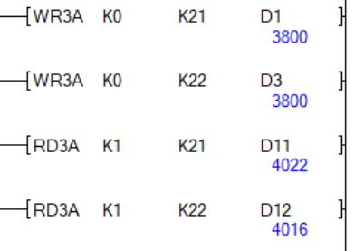 我用另一個PLC主機,帶FX3U-4DA,發數值給剛才的2AD