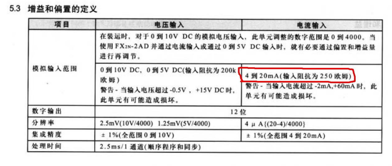 發現奇怪的事了,當使用電流模式的時候,FX2N-2AD收到20MA時,出來的值是2000多點