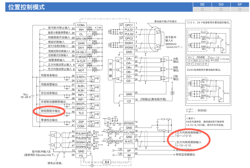位置模式也可以限制轉矩,用參數固定的內部轉矩限制,或是用模擬量的外部轉矩限制都用這個功能的