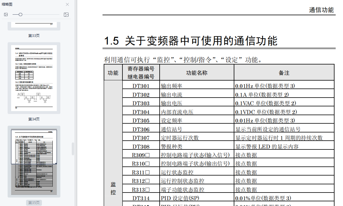 松下變頻器VF200通信讀取當前運行頻率,通過走MODBUS-RTS協議方式。請教其地址是那個??