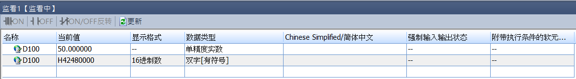 你看下,顯示格式記得調整為16進制,默認50.0十六進制顯示的時候就是H42480000