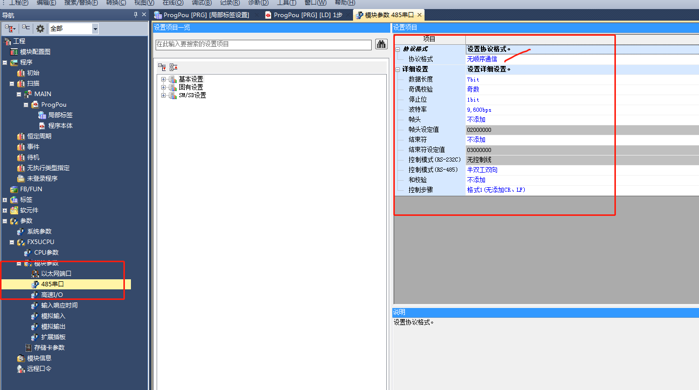 現在用三菱FX5U連接一個歐姆龍E5CC的溫控表,走Modbus是肯定沒問題了,現在想嘗試這種溫控表的無程序通信功能,老掉牙的1N還可以設置無程序通信,新版本的FX5U竟然不支持,通信參數里面的MC協議設置只能設置基本通信參數,有沒有大神會這種通信方式呀?