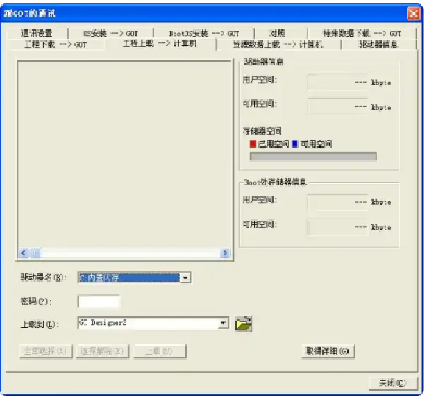 但是上載是灰色的 點取得詳細  是空白的 沒有工程內容 使用了GT Designer3軟件