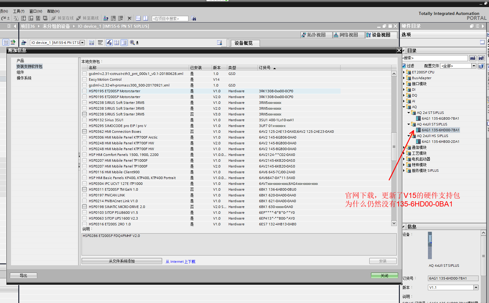 引用引用第1樓guochunyi于2023-12-03 07:36發(fā)表的 Re:* 帖子主題:西門子官網(wǎng)更新了硬件支持包,為什么目錄里還是沒有這個 .. :現(xiàn)在公開的版本已經(jīng)到了19了.用博圖,就要有思想準備:解決辦法就是安裝新版本.
