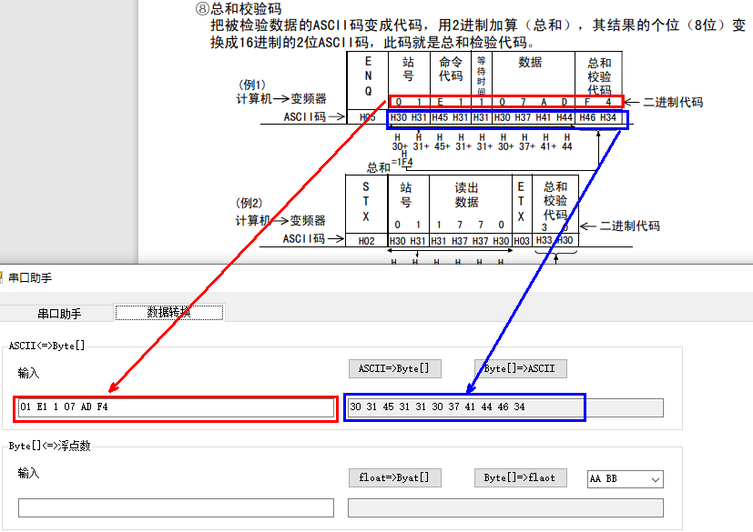老師 麻煩您幫我看看,我通過ASCLL碼轉換后得出的這個結果怎么不對呢,前面的我對手冊看了能對應的上,就是后面的校驗那里怎么不對呢,是那里轉換搞錯了嗎?
