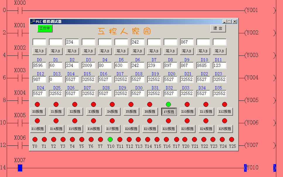 使用純軟體的方式來模擬PLC的動作 環境: GPPW+PLC調試模擬器. ^_^ 使用方法: 1 先開啟 GPPW 2 載入PLC程式 3 運行梯形圖邏輯測試啟動,即模擬運行 4 運行PLC調試模擬器 動作: 可對X輸入點進行按制,監控輸入輸出狀態、D數值輸入、輸出顯示。 目的: 方便同志們學習三菱PLC的學習和程序測試。 |