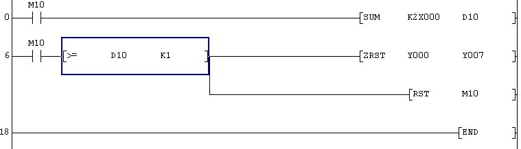 如果結束標志為m10輸入為x0~x7輸出為y0~y7那么可以這樣編: