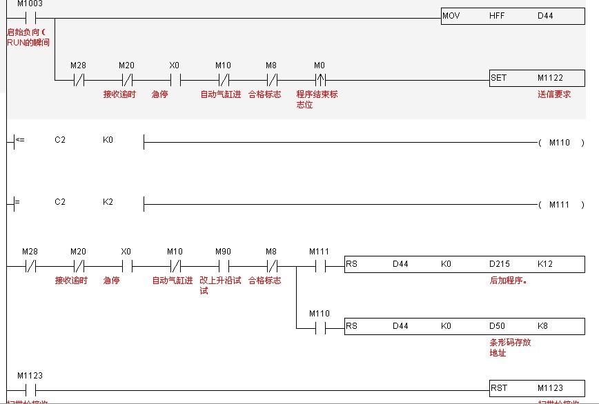 清楚原數據的問題我已經解決了。我上傳我的程序吧。而且有個問題是,你給我的程序里沒有用到M8112發送請求可以接受數據,但是我昨天現場調試的時候也試過不用M1122發送請求(臺達的發送請求為M1122),但是就接受不到條形碼了,加上后又可以接受到